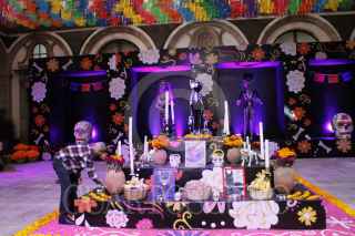 SAN LUIS POTOSI, SAN LUIS POTOSÍ, 30OCTUBRE2024.- En el centro histórico de la capital potosina se realizaron altares de muertos como el dedicado a las mascotas. FOTO: MARCELO PALACIOS/CUARTOSCURO.COM