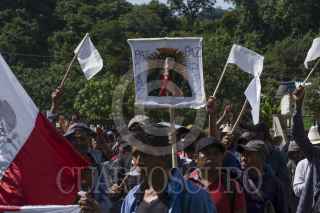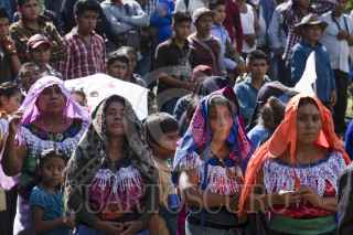 PANTELHO, CHIAPAS, 31OCTUBRE2024.- Pobladores de más de sesenta comunidades del municipio de Pantelhó se reunieron en la región de Guadalupe Victoria para denunciar ante medios de comunicación la violencia que incrementa día con día en sus territorios, ejercida por un grupo armado denominado "Los Herrera", durante el evento la población civil guardó un minuto de silencio en honor al Padre Marcelo, quien fuera asesinado el pasado 19 de octubre. Exigieron al gobierno Paz y Justicia, así como también la destitución del Consejo municipal de gobierno impuesto por el estado chiapaneco en el que están involucradas personas pertenecientes al grupo de Los Herrera, de acuerdo a la información redactada en los comunicados emitidos por los pobladores de este municipio. FOTO: ISABEL MATEOS /CUARTOSCURO.COM