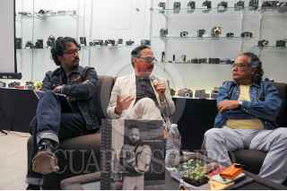 ZACATECAS, ZACATECAS, 31OCTUBRE2024.- Eduardo López Moreno, presentó en la Fototeca de Zacatecas el libro "Mitad humano mitad muñeco". La presentación estuvo a cargo del historiador Adolfo Vladimir Valtierra; el director de Cuartoscuro, Pedro Valtierra; la fotógrafa Flor Castañeda, y la subdirectora Karina Garcia. FOTO: CARLOS SEGURA/CUARTOSCURO.COM