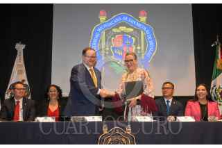MORELIA, MICHOACÁN, 31OCTUBRE2024.- El rector de la UNAM, Leonardo Lomelí Vanegas, y la rectora de la Universidad Michoacana de San Nicolás de Hidalgo (UMSNH), Yarabí Ávila González, renovaron un convenio general de colaboración académica, científica y cultural con vigencia hasta mayo de 2028. “Muchos son los desafíos que enfrentan México y Michoacán, pero más grandes son los recursos y el potencial humano de nuestras universidades. Estoy seguro de que, juntas, la Universidad Michoacana de San Nicolás de Hidalgo y la UNAM, podremos aportar soluciones a los problemas que enfrenta nuestra sociedad, a la que nos debemos como instituciones públicas y autónomas”, expresó el rector Lomelí. FOTO: UNAM/CUARTOSCURO.COM