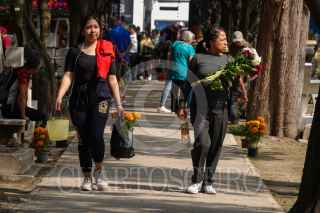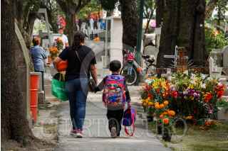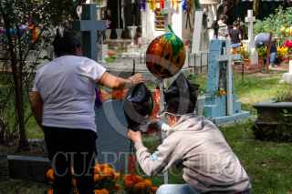 CIUDAD DE MÉXICO, 01NOVIEMBRE2024.- Habitantes de la alcaldía Coyoacán se dieron cita en el Panteón del Pueblo de Xoco para arreglar, visitar y acompañar las tumbas de sus seres queridos en el primer día del Día de Muerto o de los Fieles Difuntos. Según la tradición mexicana el día primero corresponde a los infantes, mientras que el dos es los adultos. FOTO: GALO CAÑAS/CUARTOSCURO.COM