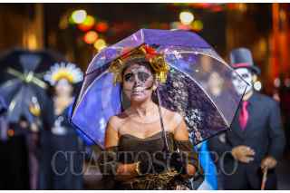 RAMOS ARIZPE, COAHUILA, 01NOVIEMBRE2024.- La tradicional callejoneada del día de muertos se realizó en la ciudad de Ramos Arizpe Coahuila, donde participaron alrededor de 2 mil catrinas que desfilaron por las principales calles de esta localidad. FOTO: ALEJANDRO RODRÍGUEZ/CUARTOSCURO.COM