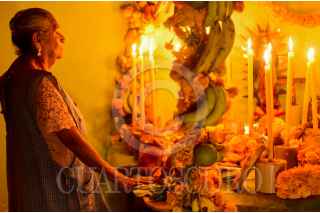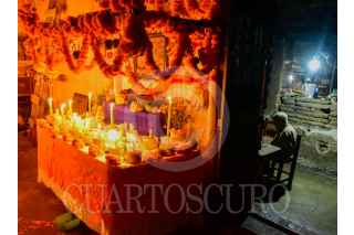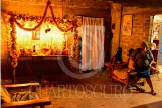 IXCATEOPAN, GUERRERO, 01NOVIEMBRE2024.- Adultos mayores de la comunidad de Ixcateopan en la Montaña de Guerrero conservan la tradición de colocar las ofrendas de Día de Muertos. Los altares están realizados por arcos de palma, flores de cempasúchil, flor de tetkalla (flor de muerto), veladoras (una por cada persona fallecida), alimentos y bebidas que al difunto les gustaban en vida como: mole, pan, agua, refrescos, cerveza y mezcal. Las almas de los difuntos se reciben al medio día, cuando son tocadas las campanas de la iglesia para anunciar la llegada y se velan durante toda la noche, los días 1 y 2 de noviembre. FOTO: CARLOS CARBAJAL/CUARTOSCURO.COM