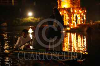PATZCUARO, MICHOACÁN. 2NOVIEMBRE2024. La comunidad autónoma de Urandén, localizada en la rivera del Lago de Pátzcuaro, ofreció su espectáculo de canoas como parte de las festividades de Noche de Muertos. Un total de 30 canoas desfilaron alrededor de los manantiales ante un público que presenció el paso del contingente tradicional de los pobladores. Al ritmo de las pirekuas, cada una de las lanchas estaba personalizada de acuerdo a los oficios de la localidad como fue el caso de los pescadores, la cual es la principal fuente de ingreso. También se hacen presentes las danzas de la región como la del Pescado y de Los Viejitos que han sido fundamental de la identidad de los pueblos de la cuenca. Durante el transcurso, también hacen su aparición los alumnos de la Escuela de Canotaje, de la que han salido deportistas destacados a nivel nacional en esta rama. FOTO: JUAN JOSÉ ESTRADA SERAFÍN /CUARTOSCURO.COM