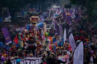 CIUDAD DE MÉXICO, 02NOVIEMBRE2024.- Miles de personas se dieron cita a lo largo de Paseo de la Reforma para presenciar el Mega Desfile de Día de Muertos 2024. El recorrido estuvo plagado de carros alegóricos inspirados en leyendas y tradiciones mexicanas respecto al Día de los Fieles Difuntos. FOTO: GALO CAÑAS/CUARTOSCURO.COM