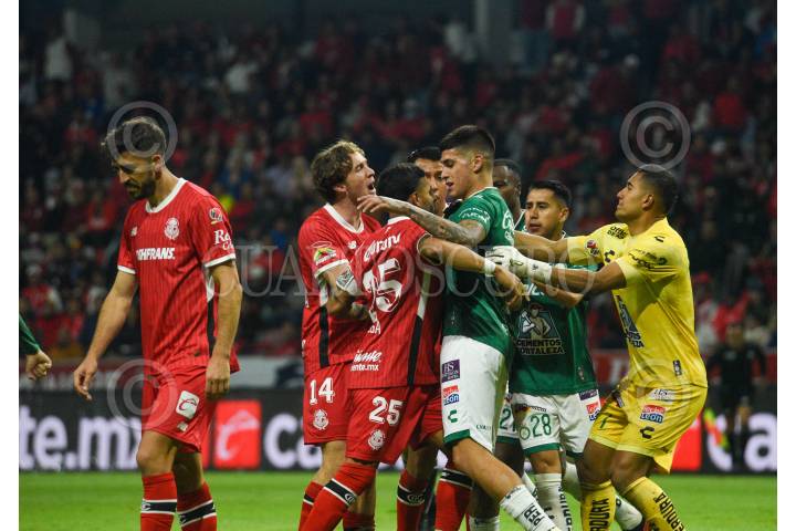 TOLUCA, ESTADO DE MÉXICO, 02OCTUBRE2024.- Un conato de bronca se registró entre los Diablos del Toluca y la escuadra del León, durante el encuentro correspondiente a la jornada 15 del Torneo Apertura de la Liga MX, en encuentro terminó 2-2. FOTO: CRISANTA ESPINOSA AGUILAR /CUARTOSCURO.COM