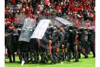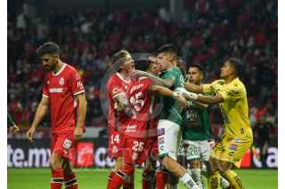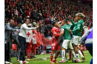 TOLUCA, ESTADO DE MÉXICO, 02OCTUBRE2024.- Un conato de bronca se registró entre los Diablos del Toluca y la escuadra del León, durante el encuentro correspondiente a la jornada 15 del Torneo Apertura de la Liga MX, en encuentro terminó 2-2. FOTO: CRISANTA ESPINOSA AGUILAR /CUARTOSCURO.COM