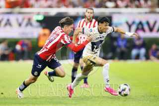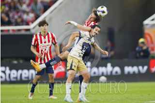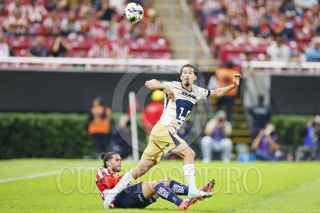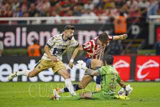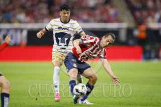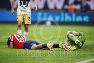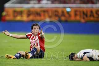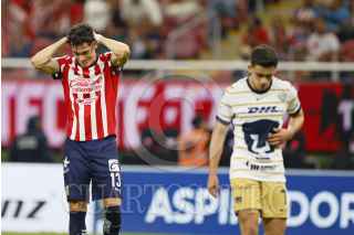 ZAPOPAN, JALISCO, 02NOVIEMBRE2024.- Jugadores de Chivas y Pumas se lamentan por las entradas fuertes durante el juego, esto en partido correspondiente a la Jornada 15 del Torneo Apertura 2024 de la Liga MX, en donde se enfrentan los equipos de Chivas vs Pumas y en juego que se lleva a cabo en el Estadio Akron, el marcador al final es de 0-0, a favor del equipo de casa. FOTO: FERNANDO CARRANZA GARCIA / CUARTOSCURO.COM