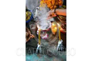 XOCHIATIPAN, HIDALGO, 02NOVIEMBRE2024.- Todas las casas cumplen con solemnidad la tradición de honrar a los muertos en el Xantolo, cada casa coloca su altar en un sitio especial al que llegará el ánima siguiendo el camino de flor de cempazúchitl desde el cementerio. Se dice que en esta temporada la huasteca "huele a xantolo", mezcla del aroma del cempazúchitl y el copal que es quemado constantemente en los sahumerios. Ambos, elementos fundamentales de las ofrendas. FOTO: SANDRA MARTÍNEZ/CUARTOSCURO.COM