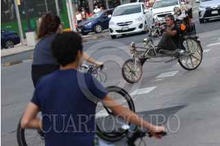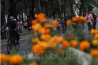 CIUDAD DE MÉXICO, 03NOVIEMBRE2024.- Una persona disfrazada recorre Paseo de la Reforma sobre su bicicleta durante el paseo dominical. FOTO: DANIEL AUGUSTO/ CUARTOSCURO.COM