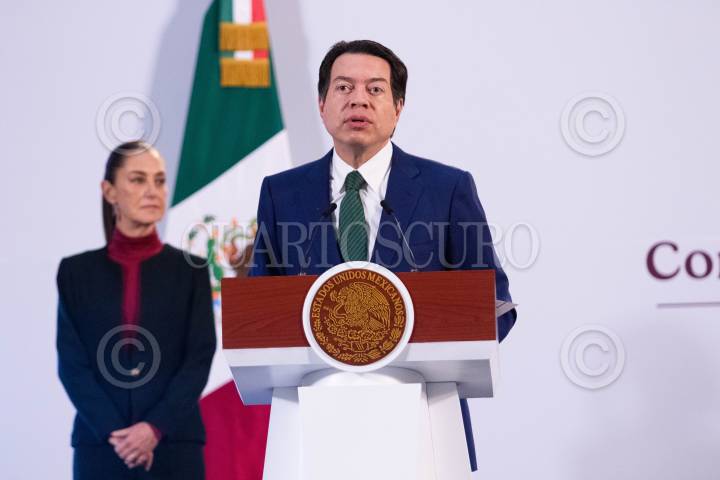 CIUDAD DE MÉXICO, 04NOVIEMBRE2024.- Mario Delgado, titular de la SEP, habló del proceso para entregar las becas Rita Cetina a alumnos y alumnos de secundaria, durante la mañanera del pueblo, en Palacio Nacional. FOTO: MOISÉS PABLO/CUARTOSCURO.COM