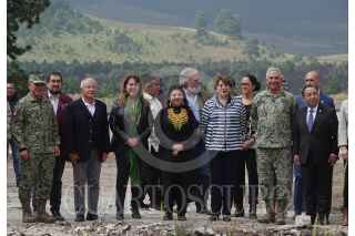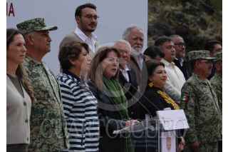 CIUDAD DE MÉXICO, 06NOVIEMBRE2024.- Las gobernadoras Delfina Gómez (Estado de México), Clara Brugada (Ciudad de México) y Margarita González Saravia (Morelos) encabezaron el anuncio de medidas y un plan conjunto para combatir la tala ilegal en el llamado Bosque de Agua, límite de la alcaldía Tlalpan, Estado de México y Morelos. FOTO: GALO CAÑAS/CUARTOSCURO.COM