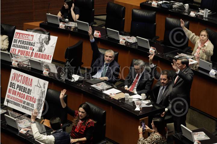 CIUDAD DE MÉXICO, 06NOVIEMBRE2024.- La bancada morenista, encabezada por Adán Augusto López, da por concluida la discusión entre los legisladores sobre la decisión tomada el día de ayer por la SCJN en torno a la Reforma Judicial. FOTO: DANIEL AUGUSTO/ CUARTOSCURO.COM