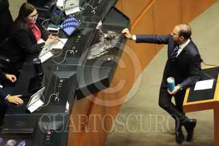 CIUDAD DE MÉXICO, 06NOVIEMBRE2024.- Marko Cortés, senador del PAN, discute con la vicepresidenta de la Mesa Directiva, Imelda Castro. FOTO: DANIEL AUGUSTO/ CUARTOSCURO.COM