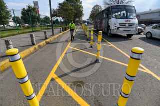 TOLUCA, ESTADO DE MÉXICO, 06NOVIEMBRE2024.- A más de un mes de haber iniciado los trabajos de la ciclovía de Isidro Fabela en Toluca ya se encuentra casi listo el primer tramo de esta en ambos sentidos de esta vialidad, en la zona de la Terminal de Autobuses y el Mercado Juárez, con cajones de estacionamiento, delineadores y pasos. FOTO: CRISANTA ESPINOSA AGUILAR /CUARTOSCURO.COM