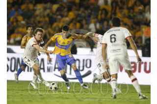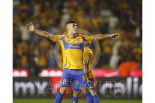 SAN NICOLÁS DE LOS GARZA, NUEVO LEÓN, 06NOVIEMBRE2024.- Juan Brunetta, de los Tigres, festeja el gol ante el Toluca, en el estadio universitario, partido correspondiente a la jornada 16 de la Apertura 2024. Marcador Final: Tigres: 2 - Toluca: 1. FOTO: GABRIELA PÉREZ MONTIEL / CUARTOSCURO.COM