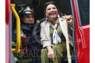 CIUDAD DE MÉXICO. 07NOVIEMBTE2024.- La Jefa del Gobierno de la Ciudad, Clara Brugada Molina, entregó vehículos y equipo al H. cuerpo de Bomberos, está mañana en el Zócalo de la Capital. FOTO: VICTORIA VALTIERRA/CUARTOSCURO.COM
