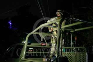 CHILPANCINGO, GUERRERO, 07NOVIEMBRE2024.- Personal del Ejército Mexicano resguardo las instalaciones de Fiscalía General del Estado de Guerrero, luego del hallazgo de una camioneta con restos humanos. Violando todo protocolo, personal de la Policía Investigadora Ministerial (PIM), retiro el vehículo del lugar, en que fue encontrada luego del reporte de olores fétidos, esto, tan solo unos minutos después del hallazgo, trasladando la unidad al interior de Servicios Periciales de la FGE. Con información aun por confirmar, se dice que podrían tratarse de una parte de los 17 miembros de una familia de la localidad de Chautipan, desaparecida desde el 22 de octubre en el municipio de Chilapa. FOTO: DASSAEV TÉLLEZ ADAME/CUARTOSCURO.COM