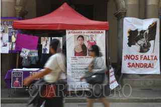 OAXACA, OAXACA, 07NOVIEMBRE2024.- Luego de 24 horas de plantón, familiares y amigos de Sandra Estefana Domínguez Martínez afirmaron que aún no hay respuesta de las autoridades para localizar a la defensora y abogada quien desapareció el pasado 4 de octubre junto con su esposo, Alexander Hernández en María Lombardo, San Juan Cotzocón. Los familiares iniciaron un plantón en el Palacio de Gobierno de Oaxaca, luego de denunciar hostigamiento y acoso. FOTO: CAROLINA JIMÉNEZ/CUARTOSCURO.COM