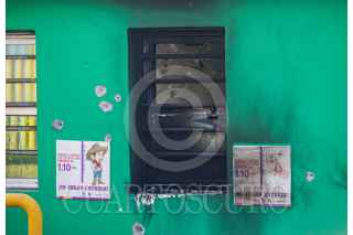 CULIACÁN, SINALOA, 07NOVIEMBRE2024.- La fachada de la taquilla del Palenque de la Feria Ganadera en Culiacán amaneció incendiada y con aproximadamente 10 impactos de bala en paredes y ventanas. El ataque, que aparentemente ocurrió durante la noche anterior o la madrugada, no dejó personas lesionadas, aunque el velador del lugar estaba presente. Este incidente, a pocos días del inicio del palenque, pone en evidencia que la seguridad en la capital del estado aún no es absoluta. FOTO: JOSÉ BETANZOS/CUARTOSCURO.COM