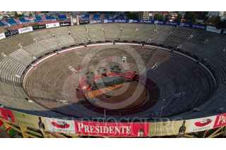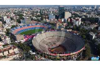 CIUDAD DE MÉXICO, 07NOVIEMBRE2024.- Luego del cierre total por parte de Protección Civil con sellos precautorios en la Plaza de Toros y el Estadio Ciudad de los Deportes y después de una reunión con autoridades, en la que también se involucraron vecinos de la zona, se informó que ambos recintos volverán a abrir sus puerta al público bajo los protocolos y medidas que de acordaron. En imagen toma aerea de la Plaza de Toros. FOTO: ROGELIO MORALES /CUARTOSCURO.COM