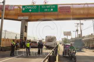 VALLE DE CHALCO, ESTADO DE MÉXICO, 07NOVIEMBRE2024. Murió un motociclista al estrellarse contra la parte trasera de un camión de trasporte público, en la lateral de la Autopista México-Puebla y Oriente 7, en Valle de Chalco. FOTO: ROGELIO MORALES/CUARTOSCURO.COM