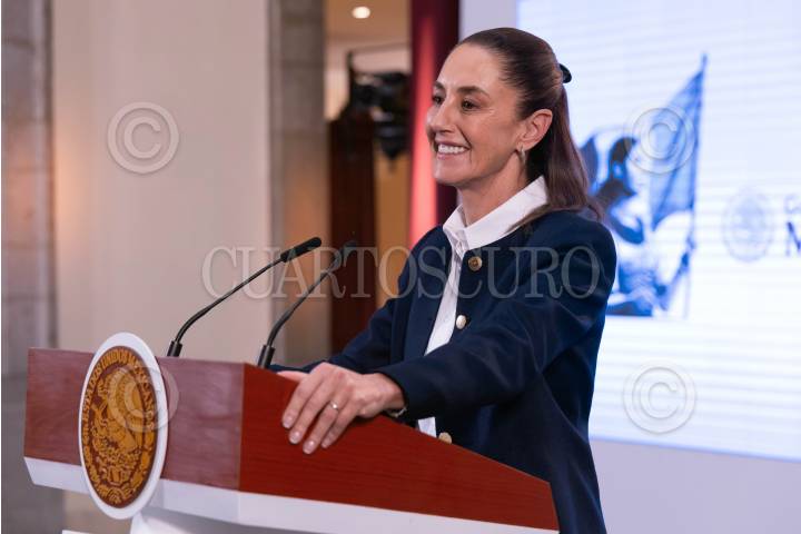 CIUDAD DE MÉXICO, 08NOVIEMBRE2024.- La presidenta Constitucional de los Estados Unidos Mexicanos, la doctora Claudia Sheinbaum Pardo en conferencia de prensa Matutina “Las mañaneras del pueblo”, en el Salón Tesorería de Palacio Nacional. La mandataria habló sobre la llamada que sostuvo el día de ayer con Donald Trump y de la derrama económica que dejara el Buen Fin. FOTO: PRESIDENCIA/CUARTOSCURO.COM