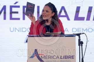 CIUDAD DE MÉXICO, 08NOVIEMBRE2024. La ex candidata presidencial, Xóchitl Gálvez y la senadora Guadalupe Murguía durante el Foro America Libre, en donde participan más de 35 organizaciones, ONG, think tanks y fundaciones políticas de más de 25 países. El foro intenta ser un punto de encuentro y referencia del centro liberal-democrático en las Américas. FOTO: EDGAR NEGRETE LIRA/CUARTOSCURO.COM