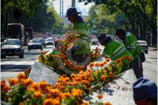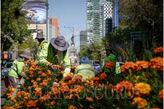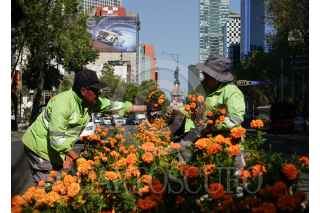 CIUDAD DE MÉXICO, 09NOVIEMBRE2024.- Como parte del Programa Sembrando Parques, trabajadores realizan labores de mantenimiento de las flores de cempasúchil plantadas en el camellón de Avenida Paseo de la Reforma. Sembrando Parques es una iniciativa del Gobierno capitalino que consiste en la creación y rehabilitación de la infraestructura ambiental para crear y regenerar espacios dignos y mejorar la imagen urbana. FOTO: MAGDALENA MONTIEL/CUARTOSCURO.COM
