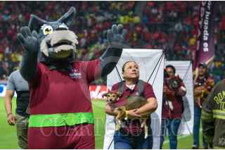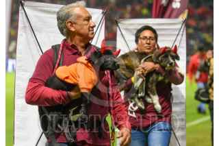 TOLUCA, ESTADO DE MÉXICO, 09NOVIEMBRE2024.- Cuatro perritos saltaron a la cancha del Nemesio Diez con cuernitos de diablo buscando un hogar, esto como parte de la campaña promovida por CEPANAF y el Deportivo Toluca Fútbol Club, bajo el lema “La Mejor Jugada es Adoptar”, durante los últimos encuentros salen al medio tiempo buscando sensibilizar a los aficionados sobre lo importante que es la adopción y tenencia responsable. FOTO: CRISANTA ESPINOSA AGUILAR /CUARTOSCURO.COM