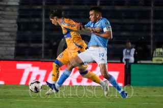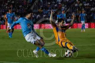 CIUDAD DE MÉXICO, 09NOVIEMBRE2024.- Nicolás Ibáñez (9) y Erik Lira (6) durante el partido en qué Cruz Azul empató uno a uno contra los Tigres de la Autónoma de Nuevo León durante la jornada 17 del torneo Apertura 2024 de la Liga BBVA MX. FOTO: GALO CAÑAS/CUARTOSCURO.COM