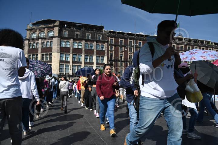 CIUDAD DE MÉXICO, 10NOVIEMBRE2024.- La jefa de Gobierno de la Ciudad de México, Clara Brugada Molina, encabezó la primera entrega del programa social “Beca para Transporte, Universitarios en Movimiento”, que se realizó en el Zócalo. La cual consiste en un apoyo económico bimestral de mil 500 pesos para solventar los gastos del transporte de las y los estudiantes de las diferentes universidades públicas de la capital. Dicho recurso se continuará entregando el próximo año, hasta hacerlo universal. FOTO: GOBIERNO DE LA CIUDAD DE MÉXICO/CUARTOSCURO.COM