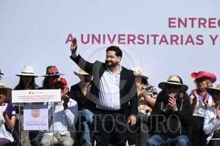 CIUDAD DE MÉXICO, 10NOVIEMBRE2024.- Juan Pablo De Botton Falcón, Secretario de Administración y Finanzas, durante la primera entrega del programa social “Beca para Transporte, Universitarios en Movimiento”, que se realizó en el Zócalo. La cual consiste en un apoyo económico bimestral de mil 500 pesos para solventar los gastos del transporte de las y los estudiantes de las diferentes universidades públicas de la capital. Dicho recurso se continuará entregando el próximo año, hasta hacerlo universal. FOTO: GOBIERNO DE LA CIUDAD DE MÉXICO/CUARTOSCURO.COM