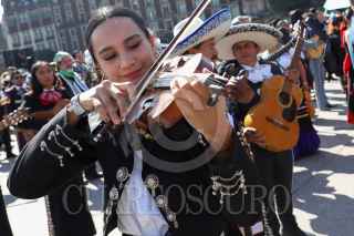 CIUDAD DE MÉXICO, 10NOVIEMBRE2024.- Un mariachi baila en el Zócalo de la capital. FOTO: DANIEL AUGUSTO/ CUARTOSCURO.COM