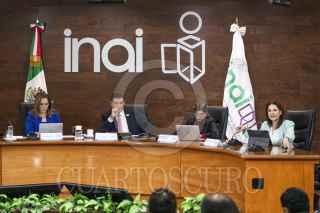 CIUDAD DE MÉXICO, 11NOVIEMBRE2024.- Blanca Lilia Ibarra Cadena, Adrián Alcalá Méndez, Josefina Román Vergara, y Norma Julieta del Río Venegas, durante la sesión de la Instituto Nacional de Transparencia. El día de mañana en la Cámara de Diputados se discutirá su continuidad. Los comisionados destacaron las aportaciones a la transparencia de la información que a tenido este organismo durante sus casi veinte años de existencia. FOTO: MOISÉS PABLO/CUARTOSCURO.COM