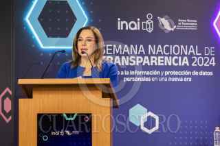 CIUDAD DE MÉXICO, 11NOVIEMBRE2024.- La comisionada Blanca Lilia Ibarra Cadena durante la inauguración de la Semana de la Transparencia 2024 convocada por el INAI. Ahí resaltó la importancia que ha tenido este organismo para transparentar la información gubernamental y ponerla al servicio de la sociedad, esto a un día de que en la Cámara de Diputados discuta su desaparición. FOTO: MOISÉS PABLO/CUARTOSCURO.COM
