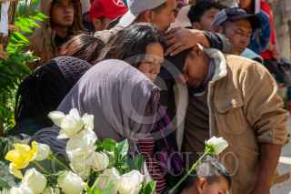 SAN CRISTOBAL DE LAS CASAS, CHIAPAS, 11NOVIEMBRE2024.- Un joven fue atropellado por una de las patrullas municipales que participaban en un recorrido de las Bases de Operaciones Mixta en la zona norte de la ciudad. Mientras dos jóvenes conducían su motocicleta después de una jornada laboral en Zinacantán fueron embestidos de manera intencional, uno de ellos Jesús Fernando Santiz Gutiérrez de 16 años murió a consecuencia de un golpe en la cabeza, el otro joven de 19 años permaneció desaparecido desde el día sábado que fueron los hechos, hasta el día lunes anunciaron a su familia que lo habían trasladado al CERSS 5 en calidad de detenido. Familiares y amigos acompañaron al difunto en una procesión fúnebre desde el lugar del velorio hasta el panteón municipal, al finalizar el entierro el padre del joven exigió justicia a las autoridades por el asesinato, una disculpa pública y que llegarían hasta las últimas consecuencias, ya que los jóvenes no participaban en ninguna actividad ilícita y solo estaban transitando. FOTO: ISABEL MATEOS /CUARTOSCURO.COM