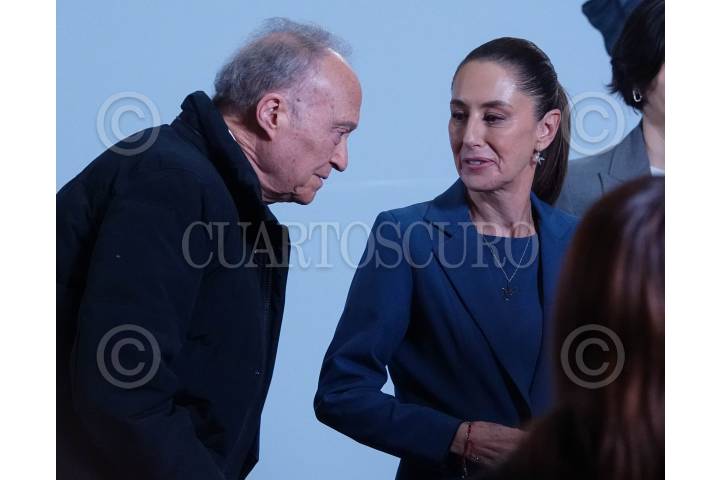 CIUDAD DE MÉXICO, 12NOVIEMBRE2024.- Alejandro Gertz Manero, Fiscal General de la República, y Claudia Sheinbaum, presidenta de México, se retiran tras la “Mañanera del Pueblo” en que se abordó el informe en materia de seguridad en Palacio Nacional. FOTO: GALO CAÑAS/CUARTOSCURO.COM