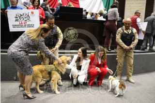CIUDAD DE MÉXICO, 12NOVIEMBRE2024.- El pleno de la Cámara de Diputados recibió algunos perros durante la discusión de la Reforma a artículos en torno a protección y cuidados animal, los canes convivieron con algunos legisladores. FOTO: DANIEL AUGUSTO/ CUARTOSCURO.COM