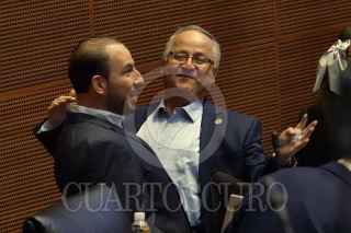 CIUDAD DE MÉXICO, 12NOVIEMBRE2024.- Javier Corral, Adan Augusto López, momentos antes de la sesión ordinaria de la Cámara de Senadores en donde se prevé que se discuta, se vote y se tome la protesta de la nueva titular de la Comisión Nacional de los Derechos Humanos. FOTO: ROGELIO MORALES /CUARTOSCURO.COM