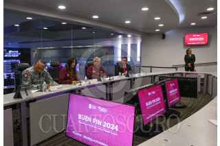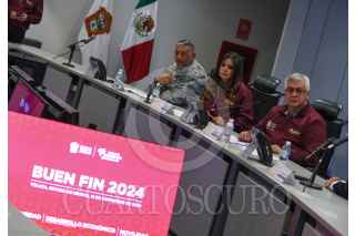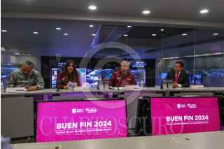 TOLUCA, ESTADO DE MÉXICO, 12NOVIEMBRE2024.- Laura González, Secretaria de Desarrollo Económico, Cristóbal Castañeda Camarillo, Secretario de Seguridad estatal, Erick Cisneros Chávez, Director General de la zona 1 de la Secretaría de Movilidad y el Inspector General Carlos Fortunato Sánchez Cobos, de la Guardia Nacional en conferencia de prensa informaron que durante El Buen Fin será desplegado un operativo con 3600 elementos, 1220 unidades, 18 drones y 25 binomios caninos, distribuidos en la entidad mexiquense y se espera que las ventas superen los 25 mil millones de pesos. FOTO: CRISANTA ESPINOSA AGUILAR /CUARTOSCURO.COM