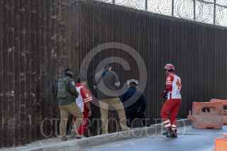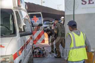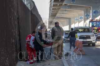 TIJUANA, BAJA CALIFORNIA, 12NOVIEMBRE2024.-Un mujer de origen extranjero cayó a un pozo tras intentar cruzar el muro fronterizo que divide a Tijuana de Estados Unidos. Personal del Instituto Nacional de Migración que se encontraba en el lugar, fueron quienes realizaron la llamada al número de emergencias solicitando ayuda. Al llegar elementos del cuerpo de bomberos, con ayuda de una camilla, lograron extraer a la mujer de alrededor de 55 años de edad, quien fue trasladada a un hospital para su atención médica. Los hechos se registraron sobre la avenida Internacional a la altura de la colonia Castillo, en dirección a Playas de Tijuana. De acuerdo a información de bomberos, la mujer migrante cayó desde aproximadamente de 7 metros de altura. FOTO: OMAR MARTÍNEZ/ CUARTOSCURO.COM