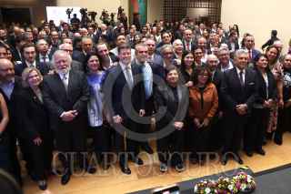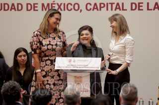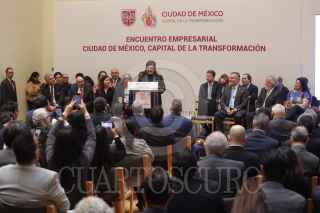 CIUDAD DE MÉXICO, 13NOVIEMBRE2024. La jefa de Gobierno de la Ciudad de México, Clara Brugada acompañada de empresarios se toman la fotografía conmemorativa del Encuentro Empresarial Ciudad de México, Capital de la Transformación, en el Club de Industriales. FOTO: EDGAR NEGRETE LIRA/CUARTOSCURO.COM