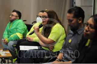 CIUDAD DE MÉXICO, 13NOVIEMBRE2024.- En rueda de prensa organizada por el Movimiento de Personas con Discapacidad, se presentaron los detalles de las actividades en torno al Día Internacional de las Personas con Discapacidad, con el lema "Orgullo y Dignidad". La fundadora del Movimiento, Martha García, junto con Jessica Aguilar, Jen Mulini y Guz Guevara, expusieron los eventos que incluyen un recorrido el sábado 7 de diciembre desde el Ángel de la Independencia hasta el Monumento a la Revolución, además de foros virtuales, feria de empleo y una serie de actividades artísticas. Edificios y monumentos de la CDMX se iluminarán en amarillo fosforescente para visibilizar esta conmemoración. FOTO: ELENA VEGA/CUARTOSCURO.COM