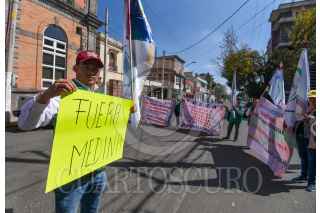 TOLUCA, ESTADO DE MÉXICO, 13NOVIEMBRE2024.- Trabajadores de la sección 35 del Sindicato de Trabajadores del Sistema Nacional de Salud (STSNS) bloquearon la avenida Indepedencia con sus intersecciones en Isabel la Católica e Isidro Fabela en las instalaciones de la Secretaría de Salud estatal denunciando diversas irregularidades así como el desabasto de insumos y medicamentos que tienen en las diferentes unidades médicas en el estado. FOTO: CRISANTA ESPINOSA AGUILAR /CUARTOSCURO.COM