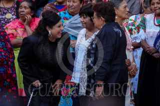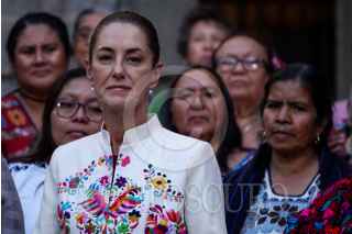 CIUDAD DE MÉXICO, 13NOVIEMBRE2024.- Claudia Sheinbaum, presidenta de México, arribó para dar el anuncio de Original Encuentro de Arte Textil Mexicano en el patio central del Palacio Nacional. FOTO: GALO CAÑAS/CUARTOSCURO.COM