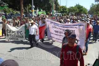 CHILPANCINGO, GUERRERO, 14NOVIEMBRE2024.- Para pedir el reconocimiento ante la ley de su sistema de justicia, cientos de policías comunitarios y autoridades de la Coordinadora Regional de Autoridades Comunitarias, marcharon en Chilpancingo y piden la atención del Congreso del Estado de Guerrero. Alrededor de las 12 del mediodía, los manifestantes acompañados por sus pobladores de las localidades en donde tienen presencia, iniciaron una marcha partiendo del Parador del Marqués, al sur de Chilpancingo, hacia la sede del Poder Legislativo. De acuerdo con Ezequiel Catalán, coordinador regional de la Casa de Justicia de San Luis Acatlán, en la actividad de este jueves participan las cuatro casas de justicia: San Luis Acatlán, Cachitepec, El Paraíso y Zitlaltepec. FOTO: DASSAEV TÉLLEZ ADAME/CUARTOSCURO.COM