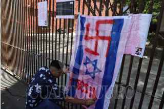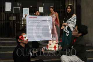 CIUDAD DE MÉXICO, 14NOVIEMBRE2024.- Activistas pro Palestina se manifestaron afuera de la Secretaría de Relaciones Exteriores, esto debido a que se cumplieron 15 años de que la actual presidenta de México, Claudia Sheinbaum, escribiera una carta donde recriminaba las acciones del estado de Israel en territorio palestino y dicha carta fuera publicada en el periódico La Jornada, los manifestantes solicitan a la mandataria mexicana actúe descuerdo a lo que escribió en ese entonces y que el país rompa relaciones con Israel. FOTO: DANIEL AUGUSTO/ CUARTOSCURO.COM