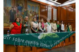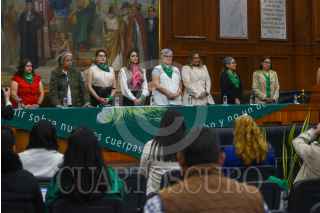 TOLUCA, ESTADO DE MÉXICO, 14NOVIEMBRE2024.- Integrantes de la Organización Marea Verde llevaron a cabo el Foro “Despenalización del Aborto” en la Cámara de Diputados local, algunas de las participantes como Enma Obrador Garrido vocera de Marea Verde vocera de Marea Verde y la diputada Zaira Cedillo Silva, quien dijo que se espera que el próximo 25 de noviembre sea un día histórico para el Edoméx al ser avalado por el congreso local la Interrupción Legal del Embarazo. FOTO: CRISANTA ESPINOSA AGUILAR /CUARTOSCURO.COM