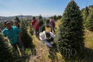 XONACATLAN, ESTADO DE MÉXICO, 14NOVIEMBRE2024.- Productores de árboles de Navidad en San Miguel Mimiapan y Santiago Tecojotillos en Xonacatlán realizaron el primer corte de Árboles de Navidad, especies como Oyamel, Ayacahuite, Pino Ocote y Pseudotsuga adornaran los hogares mexiquenses durante los festejos decembrinos, esta actividad ayuda en el combate a la tala clandestina que es un grave problema en esta zona así como ayuda a fomentar el ecoturismo y el cuidado al medio ambiente. FOTO: CRISANTA ESPINOSA AGUILAR /CUARTOSCURO.COM